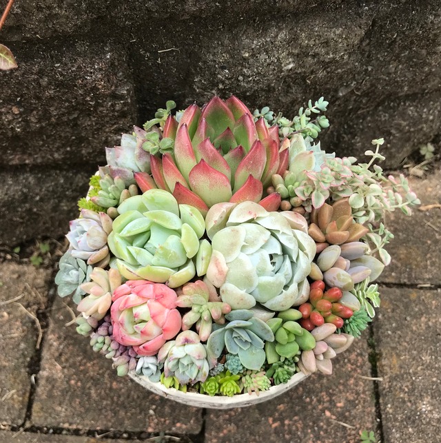 できるだけ沢山の多肉植物(主に韓国苗)を盛モリに植えました。苗が落ちないように、ネルソルを使っています。害虫がつかないように、土にはオルトランを混ぜてあります。 窓辺や棚の上、机上などにいかがですか? 配送はゆうパックで送ります。届くのが早いのと、配送中のトラブルについても保証されます。 気に入ってくださる方いませんか? 簡単なお世話の仕方の説明書をお付けします。