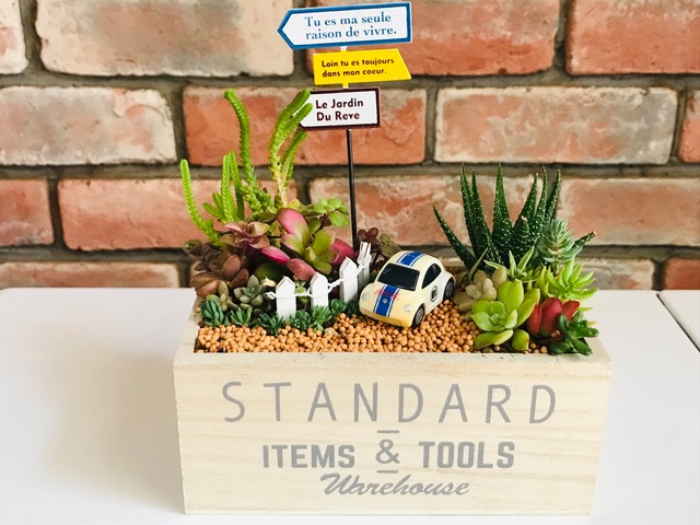 スポーツカーでドライブ(多肉植物寄せ植え)