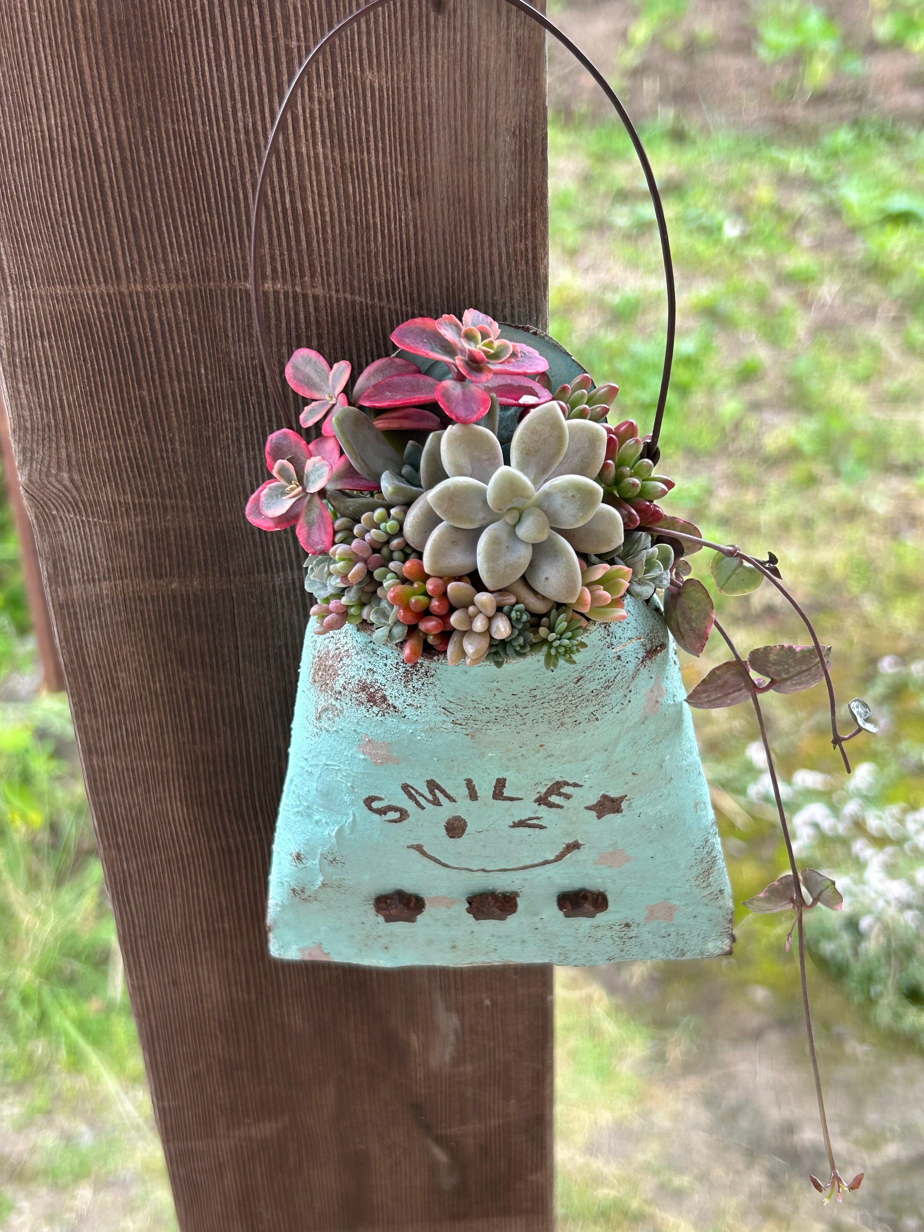 - デザイン: ハンギングプランター、水色、スマイルのデザイン