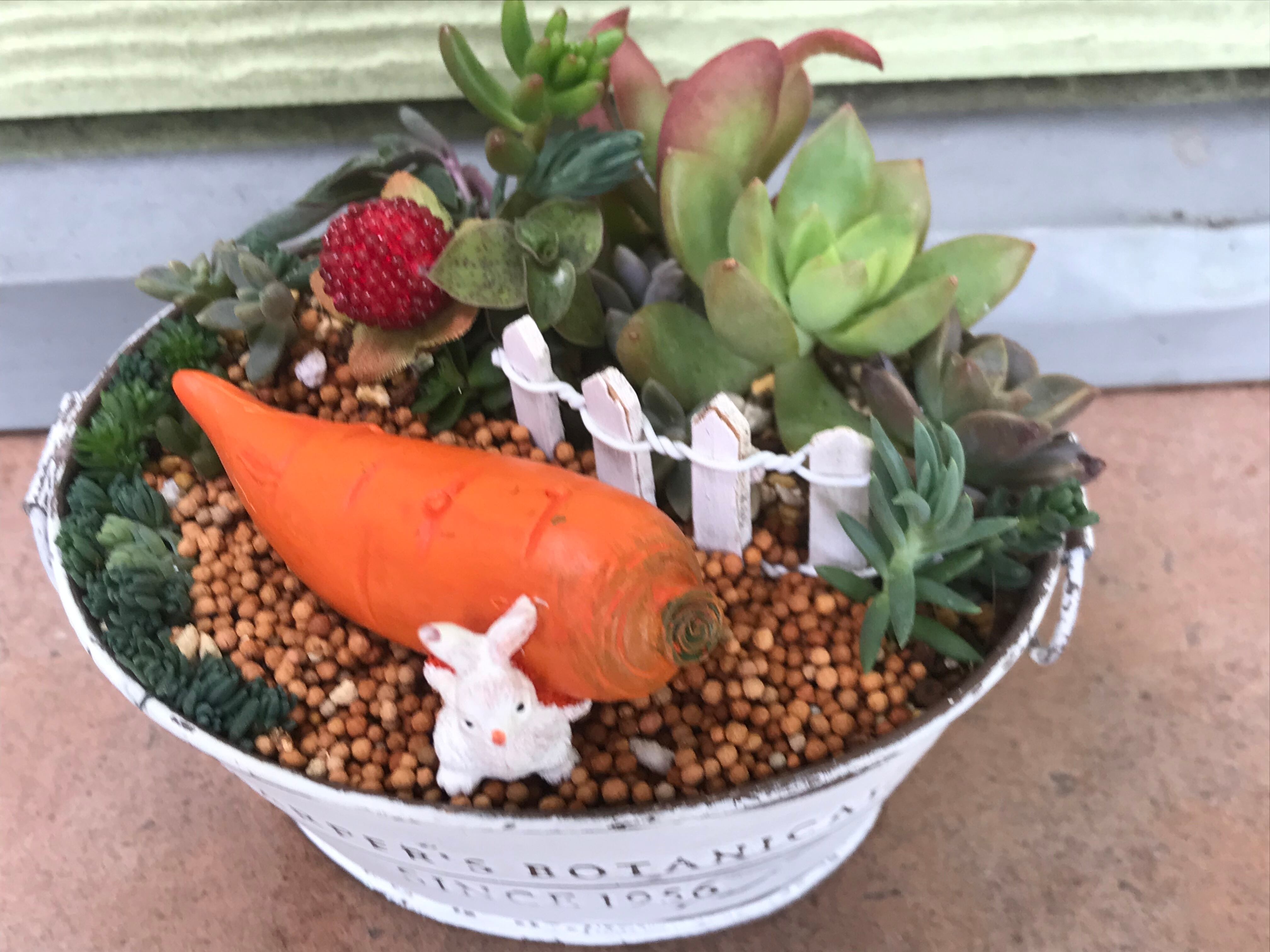 人参を収穫して、家に持ちかえるうさぎを想像して作りました。