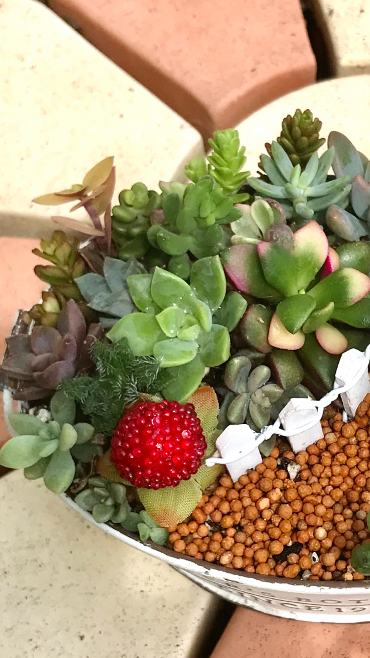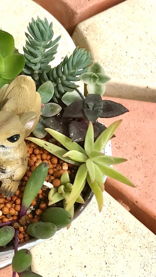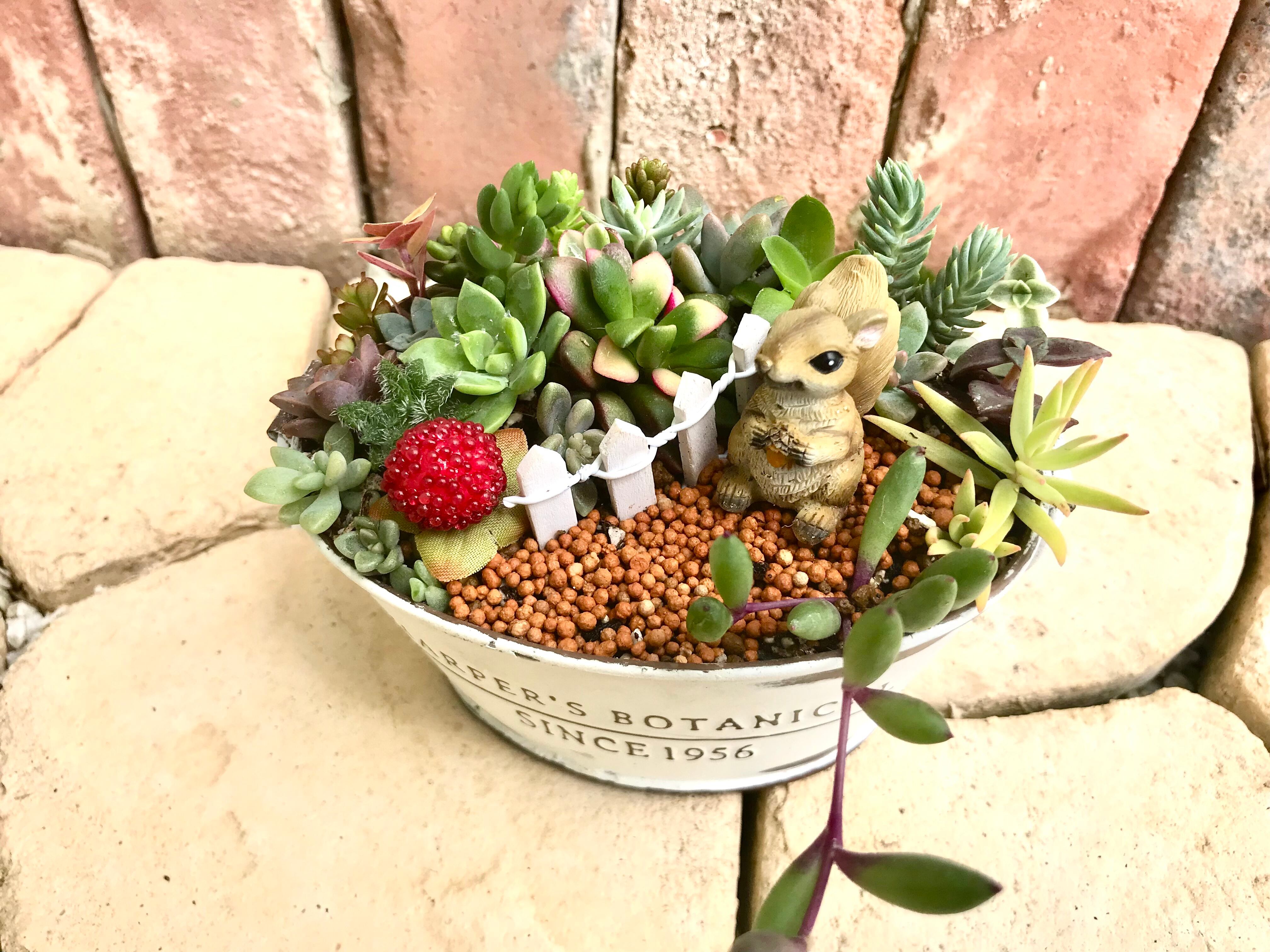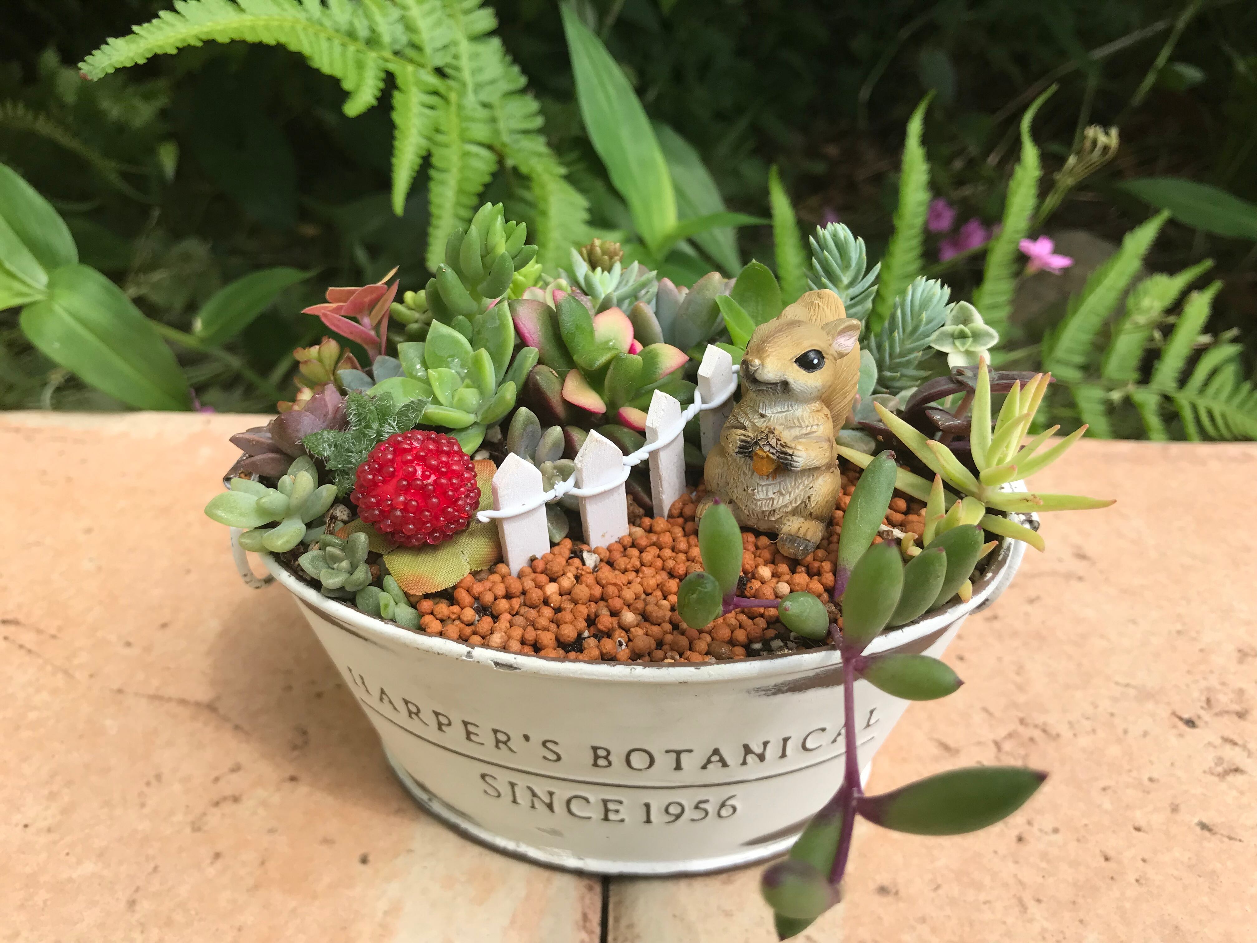 オーバル型の缶に、リスのお庭を作ってみました。できるだけ多くの種類の多肉植物を詰め込みました。横11.5✖️縦9cmで、机上や窓辺に飾れます。お手入れの仕方の説明書をお付けします。