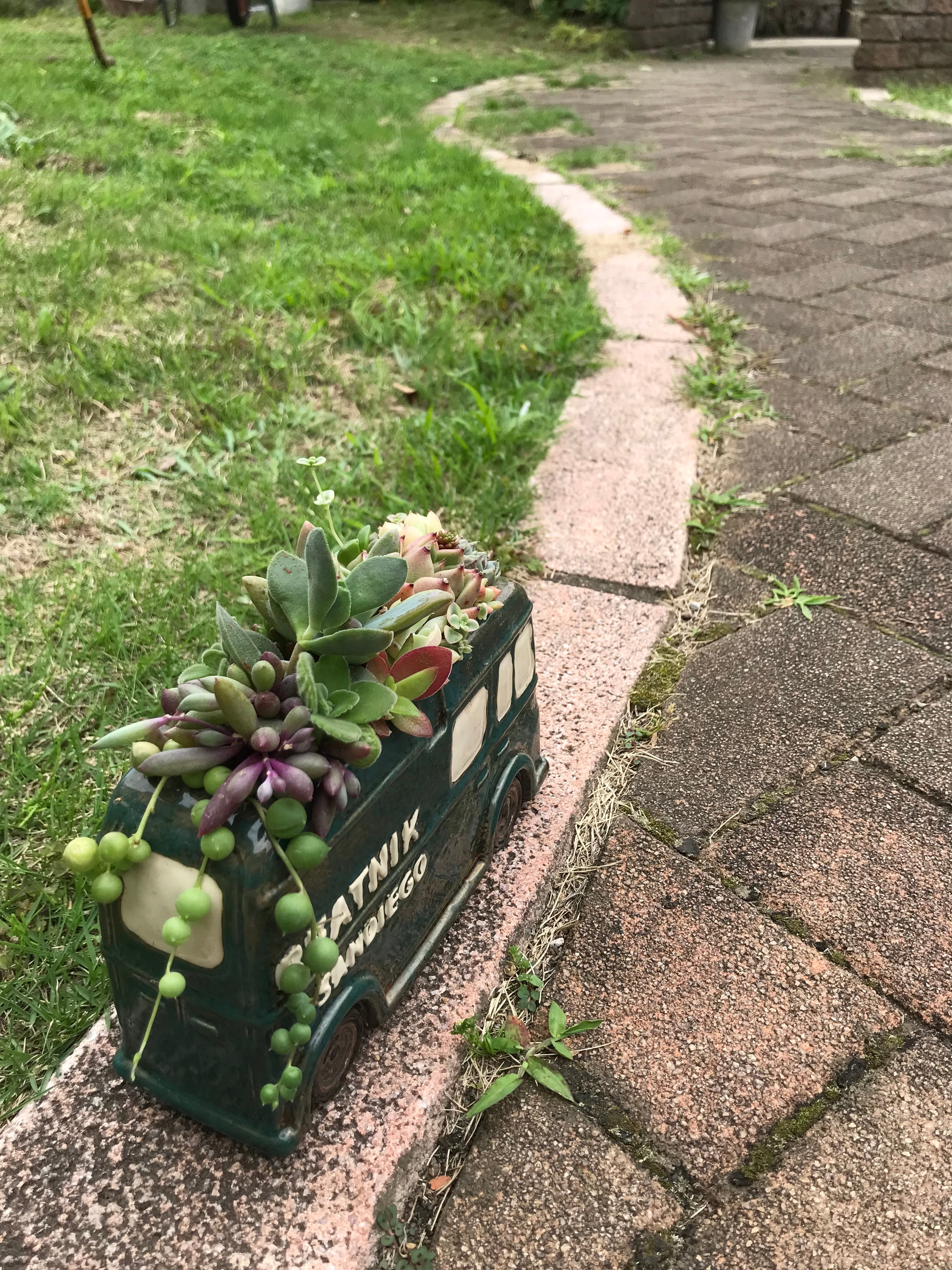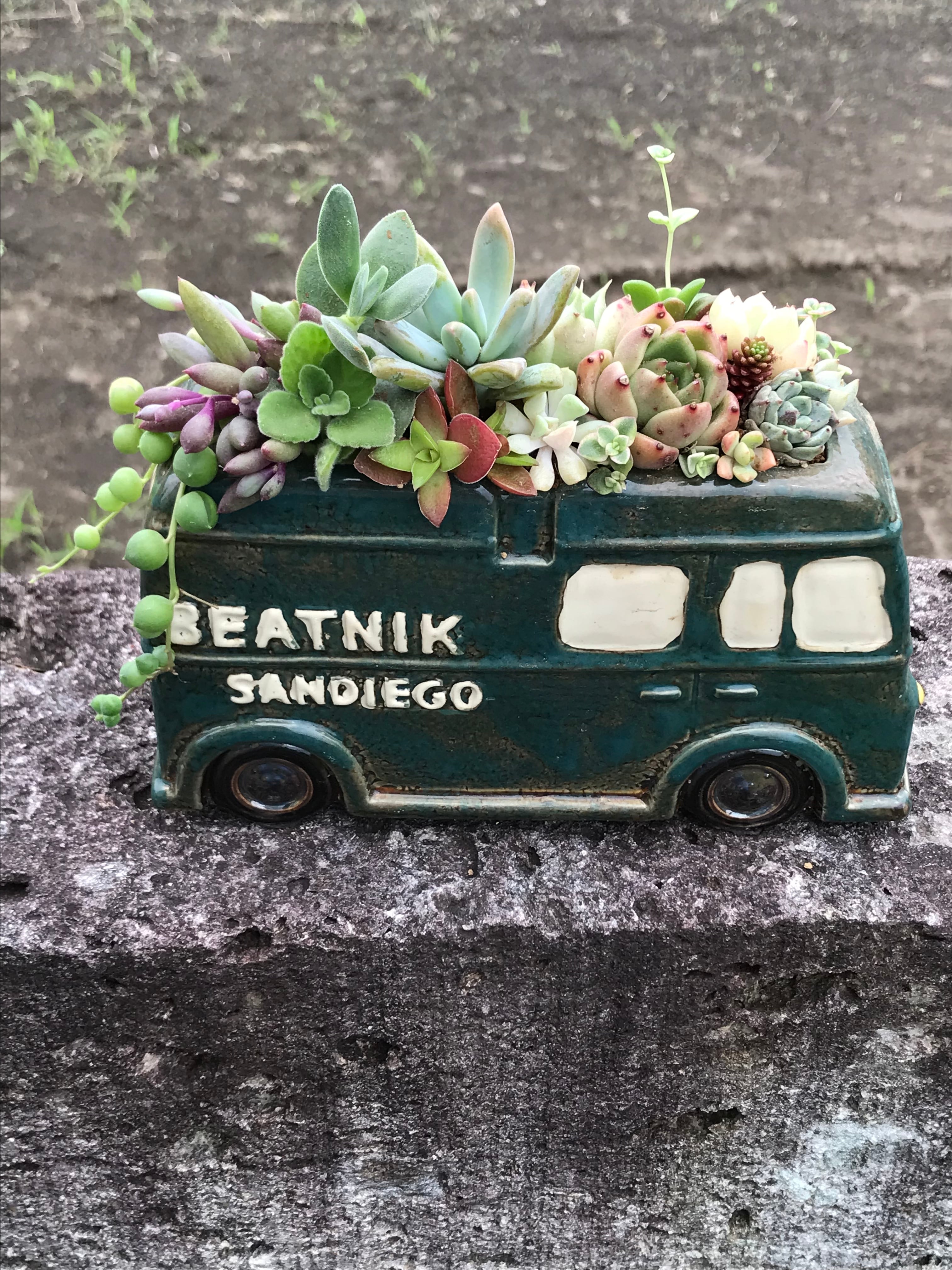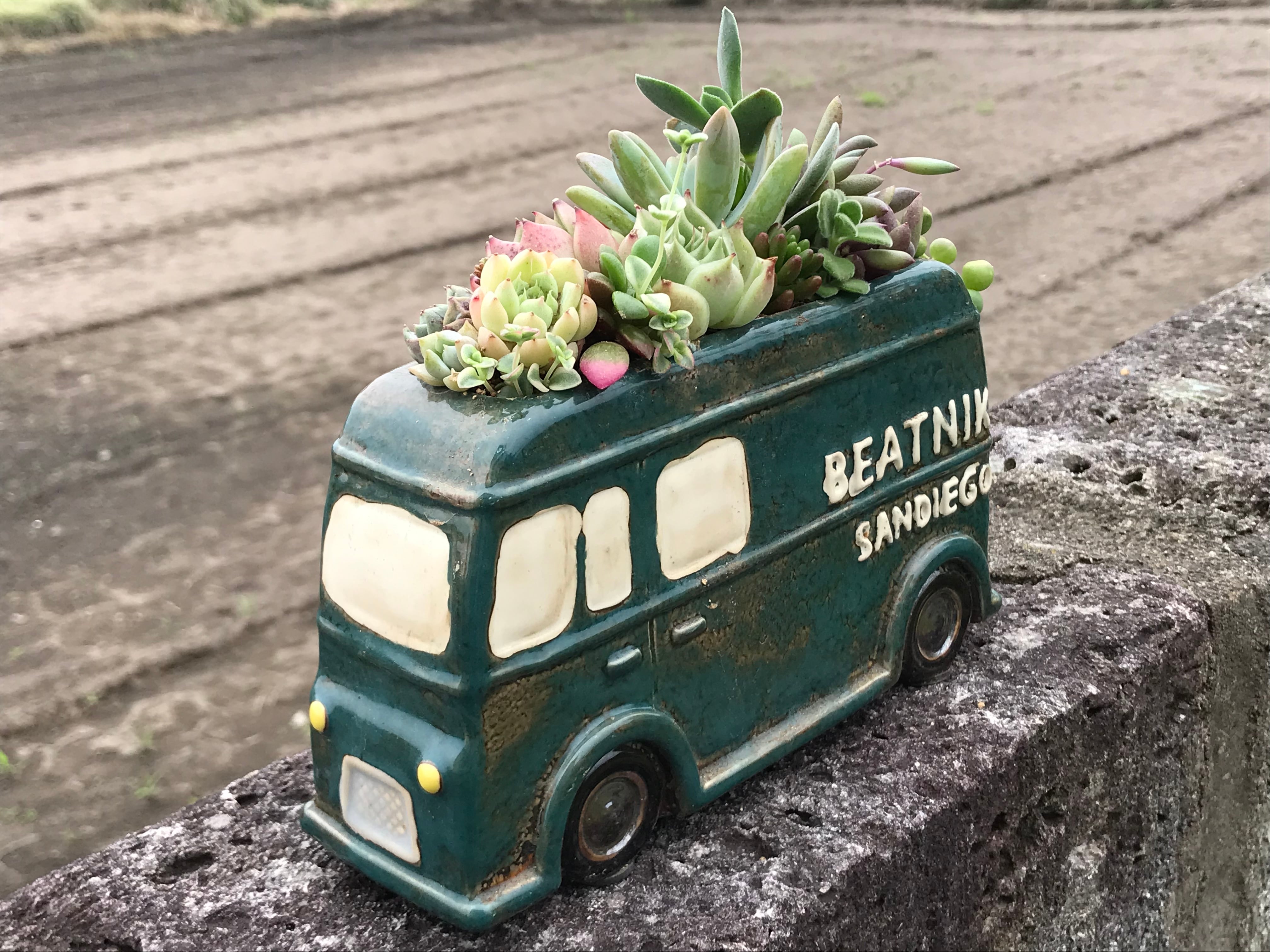 バスに、可愛らしい多肉植物を寄せ植えしました。一つひとつ手作りのため、同じ物は存在しません。あなただけのオリジナルインテリアになること間違いなし!
